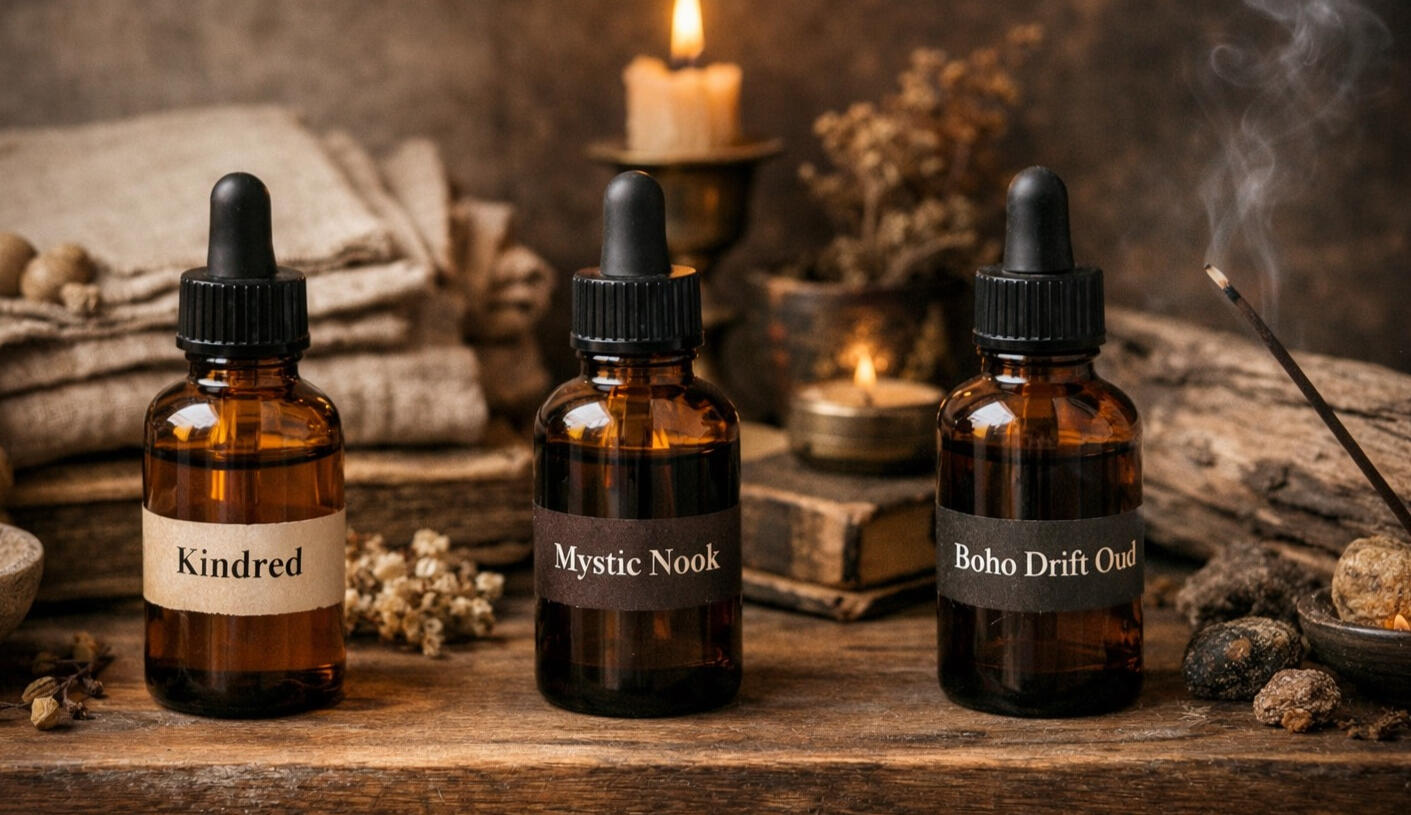 Soft woods, sweet resins, and a cozy herbal glow — warm, nostalgic, and quietly magical.Boho Drift Oud